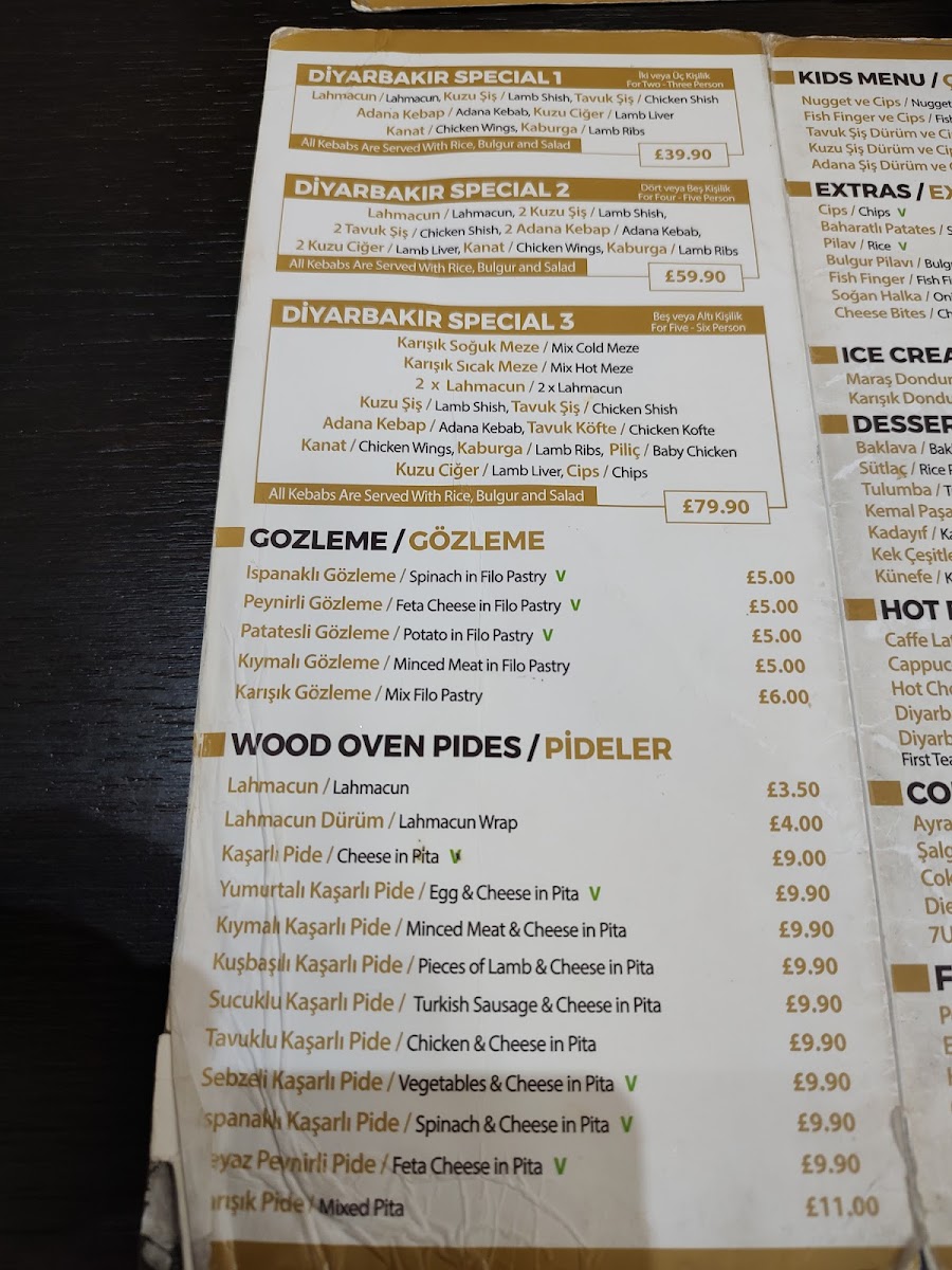 Welcome to Diyarbakir Sofrasi, a hidden gem nestled in London, where traditional Turkish flavors take center stage. The menu offers a delightful array of options, starting with their signature Gozleme, featuring choices like Patatesli, Peynirli, and Kıymalı. Each wrapped delight showcases fresh ingredients and authentic flavors, transporting you straight to the heart of Turkey.